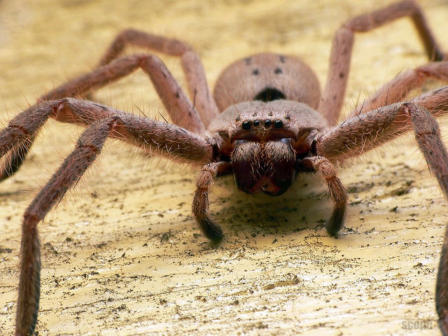 Well, we just stared at each other for about 30 seconds. I think I won because the huntsman aka triantelope abseiled up his rope and disappeared behind a rafter. Nothing to be afraid of – they are quite harmless and will even eat meat morsels proffered by hand.
