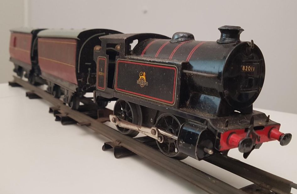 #Bloganuary today prompts us to write about a favourite childhood toy. I went out to the garage and pulled down the box that stores the remnants of my old Hornby O gauge train set. I think I was about 6 or 7 when it appeared under the Christmas Tree. I had hours of fun laying out the track in various configurations on the bedroom floor, using cushions and empty boxes as hills and tunnels. It started my love affair with trains, and here I am, six decades later still waiting for the space, time and $$$ to build a decent layout! One of those things I’ll get to when proper retirement starts, I suppose. In the meantime, one shelf in my office is dedicated to keeping my appetite whetted.