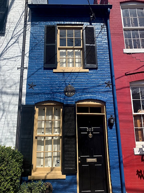 What to do with those pesky alley loiterers and wagon wheels scraping on the walls? I know, let’s fill in the alley with a little house. My daily Worldle exercise gave me this photo to locate somewhere in Google Earth and my sleuthing, dear Watson, led me to the Hollensbury Spite House in Washington DC.